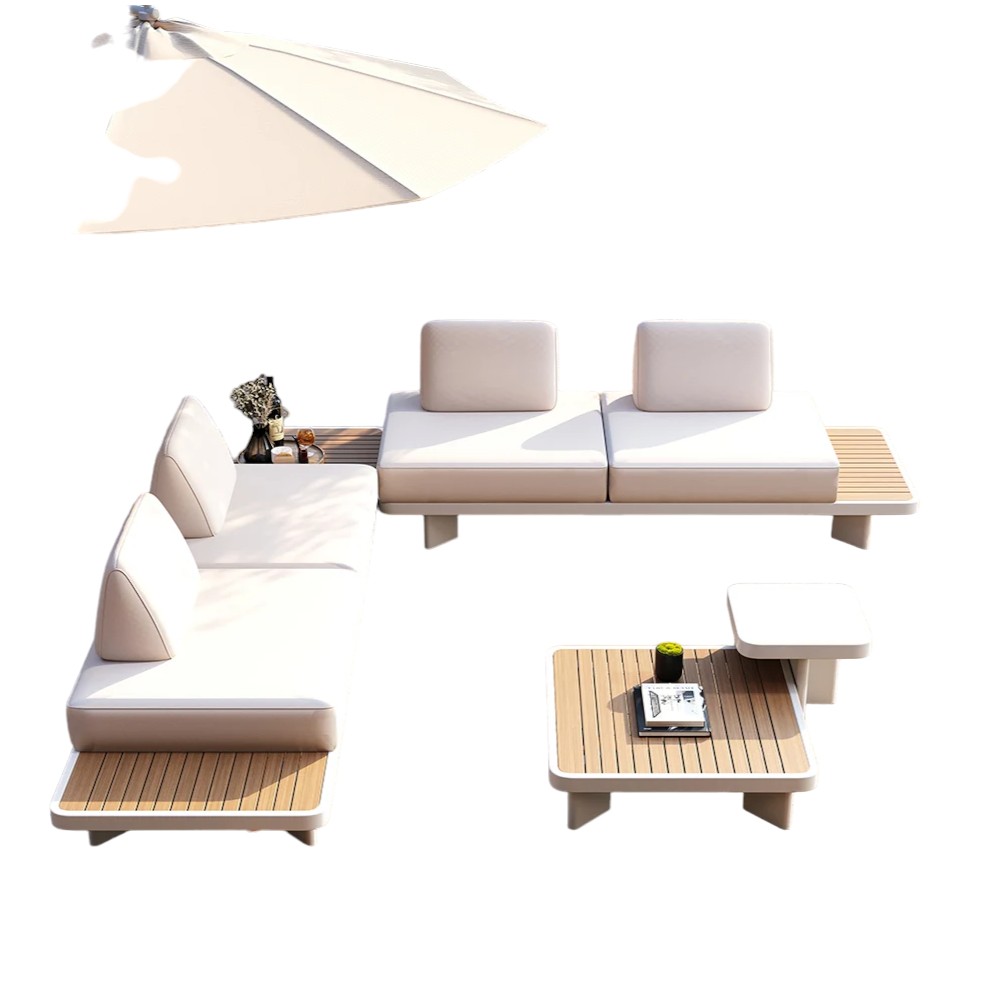 5 Pieces Modern L Shape Outdoor Sectional Sofa Set with Coffee Table in White & Brown -This large outdoor L-shaped sofa is uniquely designed with modern elegance and simplicity, seating 4~6 people.-The main frame of this sofa is made of high-quality aluminum alloy, which is durable. -The backrest of this sofa can be freely adjusted to any leisure way you like, it can be either sofa or couple lounge chair.-The high-elastic sponge cushion brings you a comfortable rest experience. -The cushion cover is made of polyester cloth, which is detachable and easy to clean. -And the coffee table is made of plastic wood, the workmanship is also very exquisite. It can also place magazines, books, newspapers, food and drinks while resting, and it also has a storage function.-Whether it is placed in the courtyard or in any outdoor space, this exquisite sofa set is a good choice for family or friends to relax. |