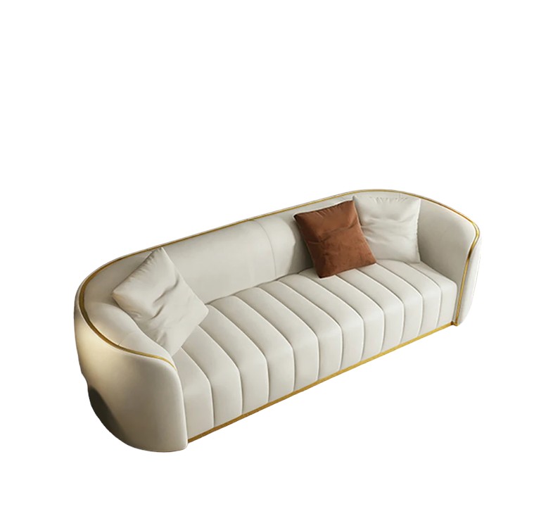 89″ modernes Kunstleder gepolstertes Sofa 3-Sitzer-Sofa in Goldbeinen Luxus-Sofa Dieses elegante und stilvolle 3-Sitzer-Sofa verwandelt jedes Wohnzimmer in eine luxuri�se Lounge. Mit weichen Tufting-Details verleiht dieses Sofa eine facettenreiche Textur in Ihr Gesamtdesignschema. Kunstlederpolsterung und Sitzpolsterung mit hochdichtem Schaumstoff sorgen f�r maximalen Komfort beim Faulenzen nach einem langen Tag. Mit dem Massivholzrahmen und der goldenen Edelstahlbasis bietet dieses Sofa robuste Unterst�tzung und langlebige Leistung. Verleihen Sie mit diesem Sofa einen Hauch von Luxus in Ihrem Wohnzimmer. – Gesamtabmessungen: 89 ?W x 34,6 ?D x 29,5 ?H (2260 mm B x 880 mmT x 750 mmH) – Sitzh�he: 450mm – Farbe: Wei� – Ausrichtung: Symmetrisch – Polstermaterial: Kunstleder – Sitzf�llung Material: Schaum – Rahmenmaterial: Massivholz – Beinmaterial: Edelstahl – Anzahl der Sitze: 3 – Kissen enthalten: Nein – Montage erforderlich: Nein – Produktpflege: Bei Bedarf mit sauberem Tuch und milder Seife abwischen. |