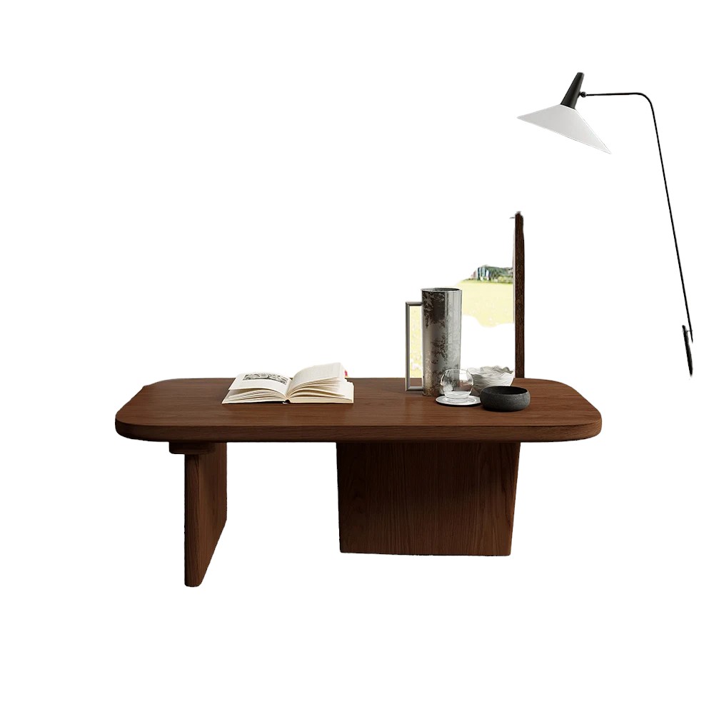 Pine Wood Coffee Table Rectangle-shaped in Walnut with Abstract Base Japandi Center your living room or den around charming style with this lovely coffee table. A sturdy and functional piece with an open and airy feel, this pine wood coffee table will bring refined elegance and warmth to your living area.- Material: Pine Wood- Color: Walnut- Overall Dimensions: 47.2″L x 23.6″W x 15.7″H (1200mmL x 600mmW x 400mmH)- Assembly Required: No- Care & Clean: Wipe Clean With Damp Cloth, Wipe Dry With Clean Cloth. |