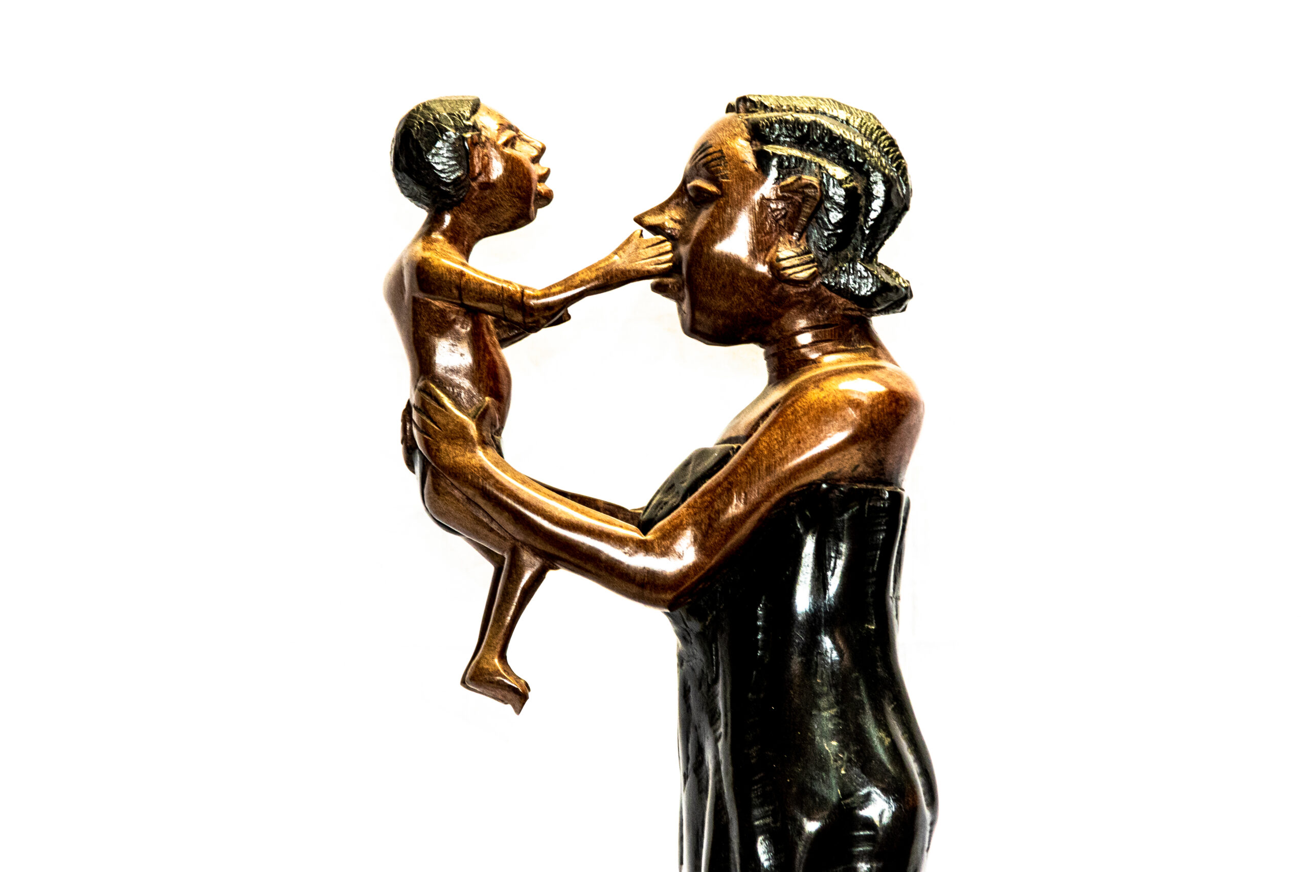 Statuette de femme qui prend soin de son enfant en pays akan.